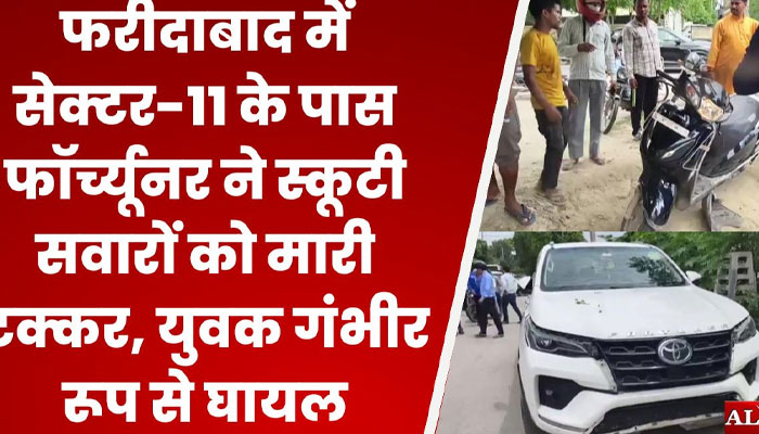Faridabad/Alive News: हरियाणा के फरीदाबाद शहर में आज एक दर्दनाक सड़क हादसा सामने आया। सेक्टर-11 के नजदीक एक तेज रफ्तार फॉर्च्यूनर कार ने स्कूटी सवार दो युवकों को जोरदार टक्कर मार दी।
