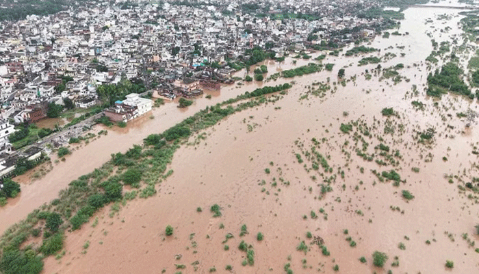 बारिश रूपी आफत का प्रकोप शांत नहीं हो रहा है। हरियाणा में नदी-नालों में उफान आने से स्थिति चिंताजनक हो गई है। हिसार, सिरसा और झज्जर में ड्रेनों में दरार आ गई है। घरों स्कूलों, अस्पतालों में पानी भर गया है। खेतों में फसलें डूब चुकी हैं। बारिश जनित हादसों में चार जिलों 30 मकान ढह गए या क्षतिग्रस्त हुए और आठ लोगों की जान चली गई। 9 जिलों के प्रभावित इलाकों के स्कूलों में छुट्टियां घोषित कर दी गईं। पांच जिलों में करीब 200 परिवारों को अपना घर छोड़ना पड़ा है। सात जिलों की 1,71,665 एकड़ फसल डूबी हुई है।