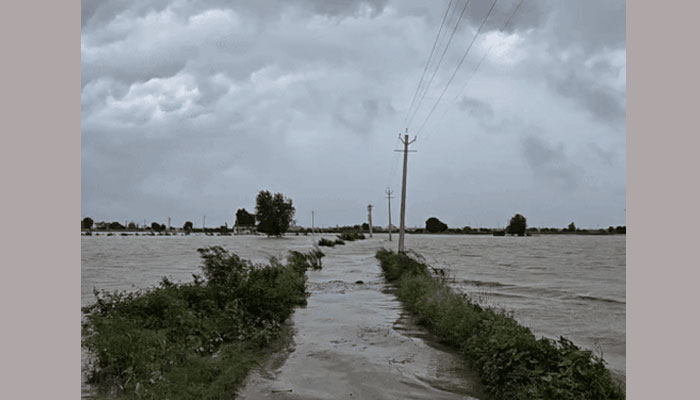 कुरुक्षेत्र के इस्माइलाबाद स्थित अजमतपुर गांव पूरी तरह पानी से घिर चुका है। गांव के दोनों रास्ते बंद हो गए हैं। घर, गलियां और खेत पानी में डूबे हैं। लोग गेट पर रेत के कट्टे लगाकर और बाल्टियों से पानी निकालकर घर बचाने की कोशिश कर रहे हैं। खेतों में करीब 200 एकड़ फसल बर्बाद हो गई है और आने-जाने के लिए सिर्फ ट्रैक्टर का सहारा है।