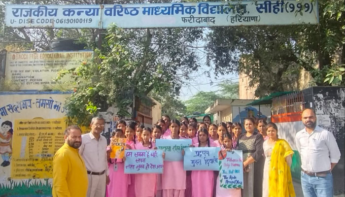 Faridabad/Alive News: सीही के राजकीय कन्या वरिष्ठ माध्यमिक विद्यालय के प्रांगण में संगोष्ठी आयोजित कर प्रदूषण मुक्त पटाखे रहित दिवाली मनाने के लिए छात्राओं को जनहित सेवा संस्था की टीम ने प्राचार्य डॉ जयप्रकाश वैष्णव की अध्यक्षता में जागरूक किया। इस अवसर पर अध्यापकों व छात्राओं ने गांव में जागरूकता रैली निकालकर ग्रीन व क्लीन प्रदूषण मुक्त पटाखे रहित दिवाली मनाने का संदेश दिया।