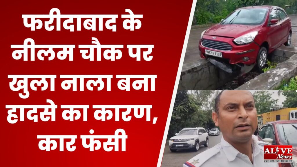 Faridabad/Alive News: फरीदाबाद के नीलम चौक के पास बारिश के बाद एक बड़ा हादसा टल गया। यहां भारी बारिश से सड़कों पर पानी भर गया, जिससे एक कार चालक को सड़क और नाले का फर्क नहीं दिखा। नतीजतन, लाल रंग की कार सीधे खुले नाले में चढ़ गई और बीच सड़क पर फंस गई।