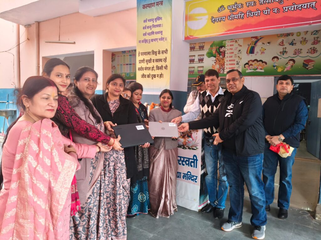 Faridabad/Alive News: The Govind Branch of Bharat Vikas Parishad (BVP) donated two laptops and rupees 53,100 to Saraswati Vidya Mandir, located in Bhudutt Colony, on Saturday.