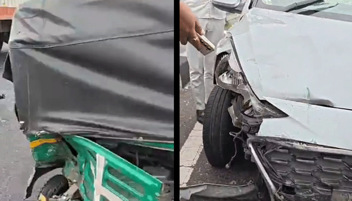 Faridabad/Alive News: बड़खल फ्लाईओवर पर कार और ऑटो में अचानक टक्कर हो गई, जिसमें ऑटो में बैठी कई सवारियां घायल हो गई। कार और ऑटो को भारी नुकसान हुआ है।