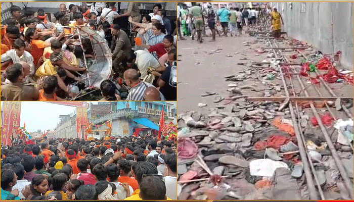 लखीमपुर खीरी में सावन माह के दूसरे सोमवार को श्रद्धालुओं में जबरदस्त उत्साह देखा गया। तड़के से ही शिव मंदिरों में भीड़ उमड़ने लगी। भक्तों ने लंबी-लंबी कतारों में खड़े होकर शिवलिंग के दर्शन किए और जलाभिषेक किया। गोला गोकर्णनाथ के पौराणिक शिव मंदिर में भगवान शिवन के दर्शन करने के लिए हजारों की संख्या में श्रद्धालुओं की भीड़ जुटी। यहां भारी भीड़ को संभालने के लिए प्रशासन के इंतजाम भी ध्वस्त हो गए। मंदिर के मुख्य मार्ग पर लोहे के एंगल से बनाई गई दीर्घा भीड़ को रोक नहीं पाई और टूटकर गिर गई। हालांकि किसी के घायल होने की खबर नहीं है। घटनास्थल पर चप्पल-जूतों का ढेर बिखरा नजर आया।