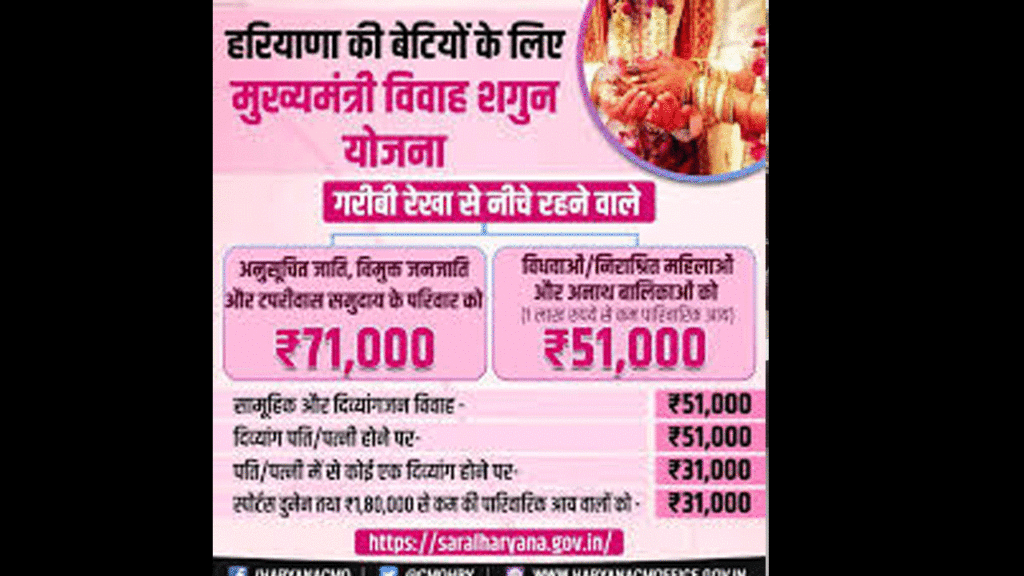 Faridabad/Alive News: हरियाणा सरकार ने समाज के सभी वर्गों की बेटियों और दिव्यांगजन की शादी में आर्थिक सहयोग प्रदान करने के उद्देश्य से मुख्यमंत्री विवाह शगुन योजना संचालित की है। यह योजना आर्थिक रूप से कमजोर वर्गों को सशक्त बनाने और बेटियों के विवाह के लिए प्रोत्साहन देने का एक सराहनीय प्रयास है। यह जानकारी उपायुक्त (डीसी) विक्रम सिंह ने दी।