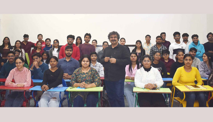 Prof. Pawan Singh, HOD, CMT, appreciated the efforts of Drishya: The Creative Canvas Club for organizing this insightful master class. He said that master classes like these play a vital role in bridging the gap between theoretical learning and practical application. Emphasizing the importance of creativity and design thinking in the field of communication and media, Prof. Singh highlighted that such interactive sessions enable students to express ideas effectively, strengthen their conceptual understanding, and inspire them to explore their individuality through design. He also thanked Dr. Neeraj Sahay for sharing his expertise and expressed confidence that initiatives like these will continue to nurture innovation and creative excellence among budding media professionals.