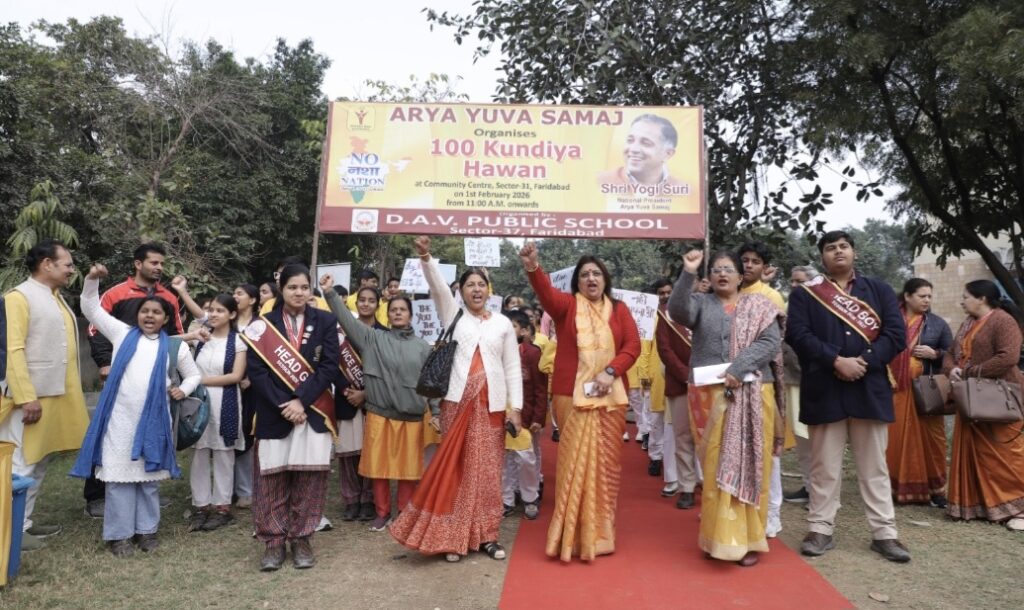 Faridabad/Alive News : D. A. V. Public School, Sector-37, in association with the DAV College Managing Committee (DAVCMC), organised the fourth 100 Kundiya Hawan at the Community Centre, Sector-31, Faridabad, reaffirming its unwavering commitment to social reform through its sustained crusade ‘No Nasha Nation’.
