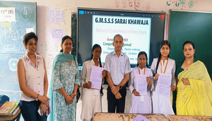 Faridabad/Alive News: गवर्नमेंट मॉडल सीनियर सेकेंडरी स्कूल सराय ख्वाजा फरीदाबाद में जिला प्रशिक्षण एवं शिक्षण संस्थान पाली फरीदाबाद के निर्देशानुसार विभिन्न प्रतियोगिताओं का आयोजन प्राचार्य रविन्द्र कुमार मनचंदा की अध्यक्षता में किया जा रहा है। इसी कड़ी में विभिन्न विषयों न्यूट्रिशन, हेल्थ एंड सैनिटेशन, टोबैको फ्री हरियाणा, सैफ यूज ऑफ इंटरनेट आदि पर निबंध लेखन प्रतियोगिता का आयोजन किया गया।