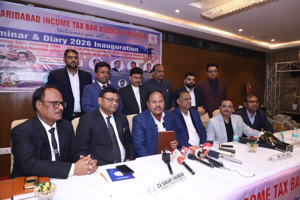 Faridabad/Alive News: फरीदाबाद इनकम टैक्स बार एसोसिएशन (फिटबार) की ओर से होटल डिलाइट सरोवर पोर्टिको में नव वर्ष समारोह, फिटबार डायरी 2026 के विमोचन और नई आयकर कानून के तहत कैपिटल गेन टैक्स पर सेमिनार का आयोजन किया गया। कार्यक्रम के मुख्य अतिथि आयकर आयुक्त (एआईटीसी) विजय सिंह रहे।