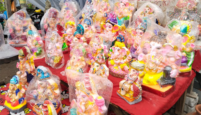 मूर्तिकार जगदीश ने कहा कि वह कलकत्ता से गणपति बप्पा की मूर्तियों को मंगवाकर यहां अलग- अलग रेटों में बेचते है। वह 50 मूर्तियों का स्टॉक मंगवाते है जिसमें से लगभग 40 बीक जाती है।