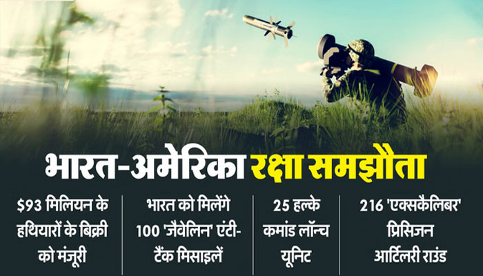 इस सौदे में 100 एफजीएम-148 जैवेलिन मिसाइलें, 25 हल्के कमांड लॉन्च यूनिट, 216 एक्सकैलिबर प्रिसिजन आर्टिलरी राउंड शामिल है। इनके संचालन, रखरखाव, सुरक्षा निरीक्षण और सैनिकों के प्रशिक्षण से जुड़े सभी सपोर्ट पैकेज भी शामिल है।