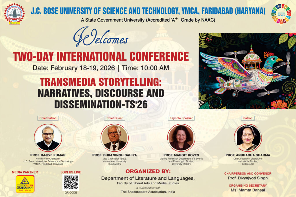 Faridabad/Alive News: J.C. Bose University of Science and Technology, YMCA is all set to host a two-day international conference titled “Transmedia Storytelling: Narratives, Discourse and Dissemination (TS’26)” on February 18–19, 2026. The conference will be conducted in hybrid mode, allowing scholars from India and other countries to join both offline and online.