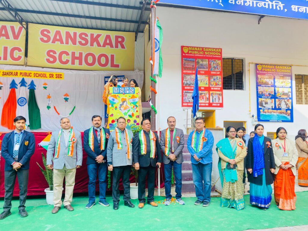 Faridabad/Alive News: Manav Sanskar Public Senior Secondary School, Faridabad celebrated the 77th Republic Day of India with great joy, pride and patriotic spirit on Monday in the school campus. Students, teachers and staff members took active part in the programme.