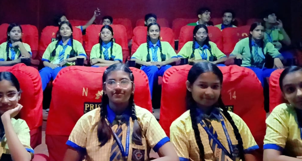The day began with students assembling at the school premises and then proceeding to the Pristine Mall in a well-coordinated manner. Teachers and support staff accompanied the students throughout the trip to ensure their safety and discipline. At the theatre, students enjoyed the film and participated in a short interactive session afterward, reflecting on the moral and mythological themes portrayed in the movie.