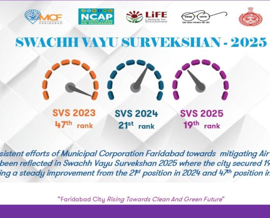स्वच्छ वायु सर्वेक्षण-2025 में फरीदाबाद 19वें स्थान पर, पिछले साल से 15 पायदान की छलांग