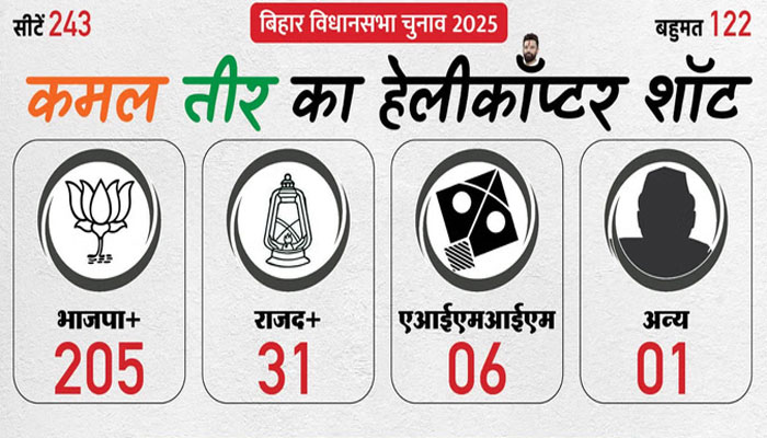 Bihar/Alive News: बिहार विधानसभा चुनाव के रुझानों में एनडीए बंपर जीत की तरफ बढ़ रहा है। राजद के नेतृत्व में महागठबंधन का बुरा हाल है। साफ है कि बिहार की जनता ने पीएम मोदी और नीतीश कुमार के नेतृत्व में एक बार फिर विश्वास जताया है