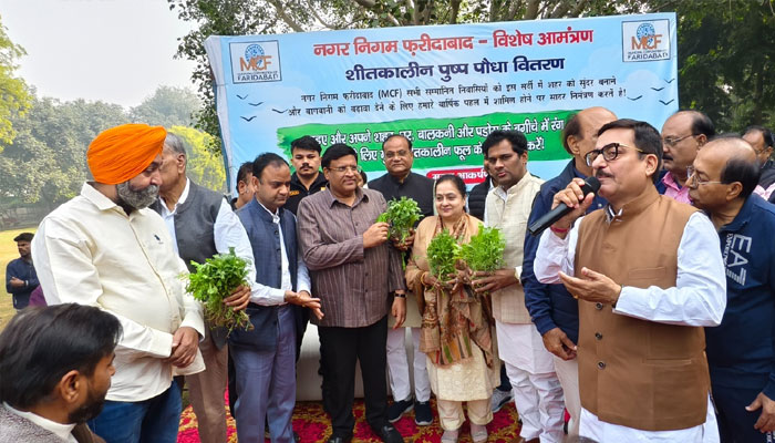 Faridabad/Alive News: नगर निगम फरीदाबाद द्वारा सेक्टर-14 स्थित सेंट्रल पार्क में शीतकालीन फूल वितरण समारोह का आयोजन किया गया, जिसका शुभारंभ कैबिनेट मंत्री विपुल गोयल ने किया। कार्यक्रम में नगर निगम कमिश्नर धीरेन्द्र खड़गटा और मेयर प्रवीण जोशी भी मौजूद रहे। समारोह के साथ शहर में बड़े स्तर पर हरित अभियान की शुरुआत की गई।