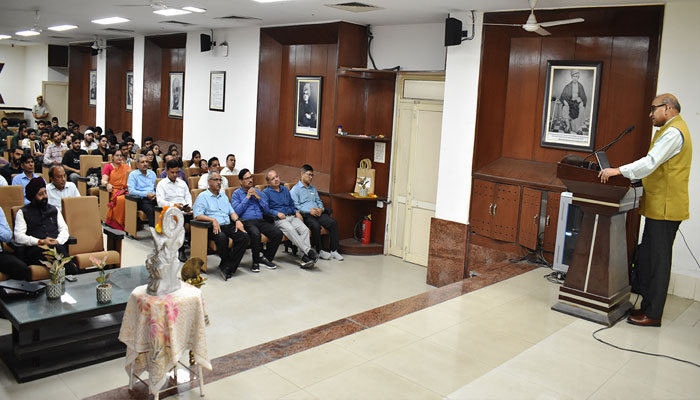The event commenced with a traditional lamp lighting ceremony, followed by Saraswati Vandana and the University Kulgeet. Dr. Arvind Gupta, Chairperson of the Department, outlined the STC’s objectives, emphasizing its goal to equip students of the Robotics and Artificial Intelligence branch, faculty members, M.Tech, and Ph.D. scholars with cutting-edge knowledge in robotics, automation, and industry-relevant technologies.