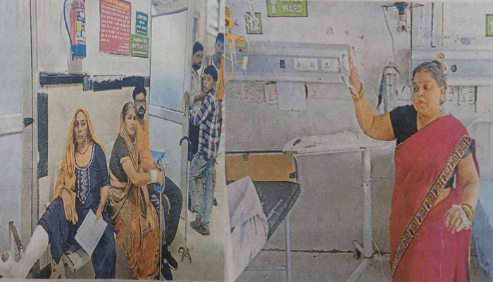 दृश्य तीन – दाेपहर के एक बजे हैं। अपातकालीन विभाग के साथ ही कमरा नंबर 39 ड्रैसिंग रुम के बाहर बैठने की जगह है, मगर कही पंखा नही है। एसजीएम नगर निवासी संजय कुमार तथा ओमवती नाराजगी जताते हैं कि गर्मी में पंखा न हाेने से परेशानी झेलनी पड़ी है, मगर अस्पताल प्रबंधन का इस तरफ ध्यान नहीं है।