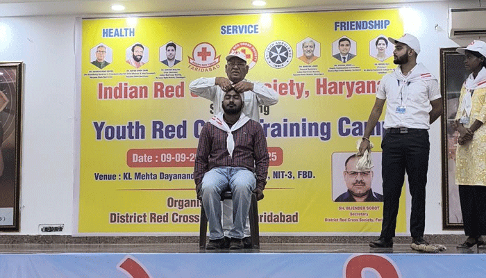 Faridabad/Alive News: अंकुश मिगलानी, उपाध्यक्ष वं महेश जोशी, महासचिव भारतीय रेडक्रॉस सोसायटी हरियाणा राज्य शाखा चंडीगढ़ से प्राप्त निर्देशानुसार एवं विक्रम सिंह, उपायुक्त एवं प्रधान जिला रेडक्रॉस सोसायटी फरीदाबाद के कुशल मार्गदर्शन व एवं सचिव बिजेंद्र सौरोत के नेतृत्व में 9 नवंबर से 13 नवंबर तक के० एल० मेहता दयानन्द महिला महाविद्यालय, एन आई टी 3, फरीदाबाद के प्रांगण में चल रहे यूथ रेडक्रॉस प्रशिक्षण शिविर के चौथे दिन आज 12 नवंबर का आरंभ रेडक्रॉस प्रार्थना के साथ हुआ।