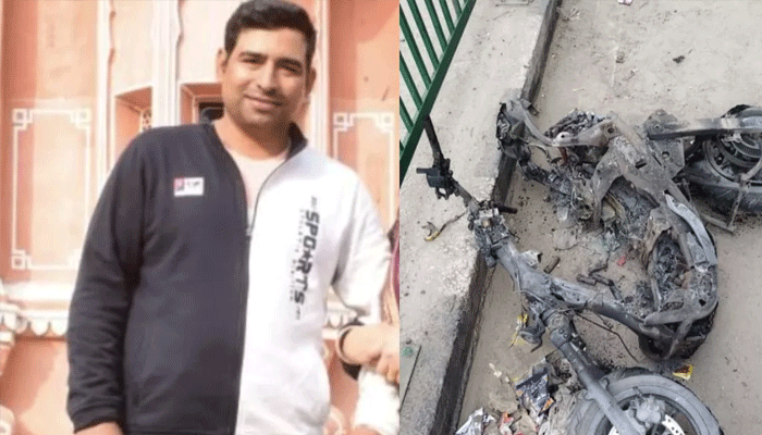 टक्कर लगने के बाद स्कूटी उछलकर डिवाइडर से लगी। इसके बाद स्कूटी में आग लगी। हादसे में कुछ देर बाद ही अतेंद्र ने दम तोड़ दिया। टक्कर के बाद कार का अगला हिस्सा भी क्षतिग्रस्त हो गया।