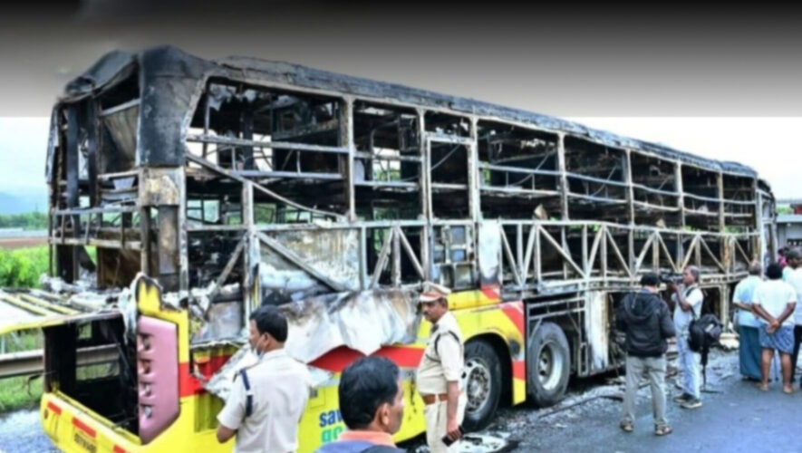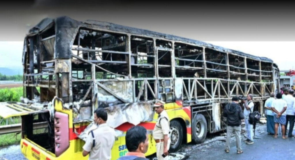 24 अक्टूबर की सुबह बेंगलुरु जा रही स्लीपर बस ने एक बाइक सवार को टक्कर मार दी थी, जिसके बाद यह बाइक बस के निचले हिस्से में फंस गई और काफी दूर तक घिसटती चली गई, जिससे उसका फ्यूल टैंक फट गया और इसके बाद बस में आग गई।