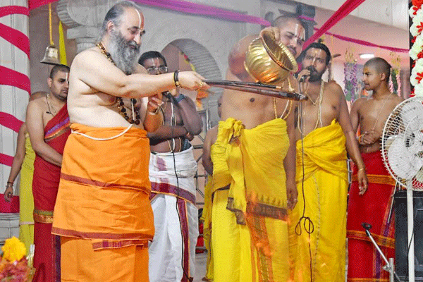 पुजारियों को चंदन से अभिषेक किया गया और ठंडा करने के लिए गुलाब जल से छिडक़ा गया क्योंकि वे पवित्र अग्नि के करीब बैठे थे। वहीं यज्ञ कुंड या अग्नि स्थान को फलों, फूलों और शुभ रंगोली से सजाया गया था। पुजारियों ने सूक्त, पुरुष सूक्त, सुदर्शन मंत्र और सुदर्शन अष्टोत्तर शत नाम का पाठ किया वहीं यज्ञशाला में चार अलग अलग स्थानों पर बैठकर चतुस्र्थानमार्चना भी की गई। जय श्रीमन्नारायण एवं जयगुरुदेव के जयघोषों से दिव्यधाम गुंजित हुआ।