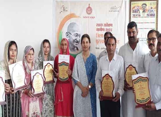 स्वच्छता को लेकर ग्राम पंचायतो को किया सम्मानित