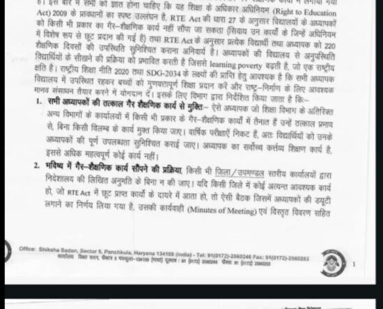 हरियाणा में शिक्षकों को गैर-शैक्षणिक कार्यों से मिलेगी राहत, अब केवल पढ़ाई पर रहेगा फोकस
