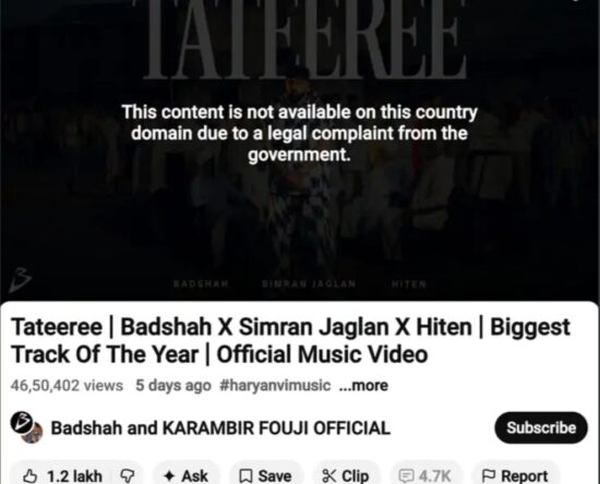 Chandigarh/Alive News: मशहूर रैपर और सिंगर बादशाह का नया गाना ‘टटीरी’ भारी विवादों के बाद यूट्यूब से हटा दिया गया है। 1 मार्च 2026 को रिलीज हुए इस गाने ने महज एक हफ्ते में 5 करोड़ (50 मिलियन) से ज्यादा व्यूज हासिल कर लिए थे, लेकिन कानूनी शिकायतों के बाद अब भारत में इसे ब्लॉक […]