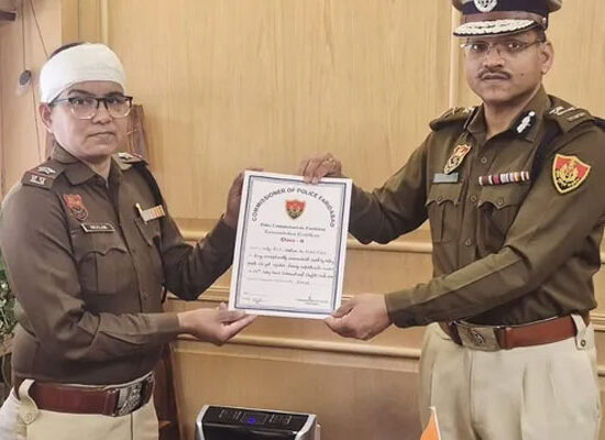 सूरजकुंड मेले में घायलों की मदद करने वाले पुलिसकर्मी और सड़क हादसे में घायल अधिकारी सम्मानित