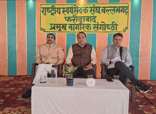 Faridabad/Alive News: राष्ट्रीय स्वयंसेवक संघ के सौ वर्ष पूर्ण होने के उपलक्ष्य में सेक्टर-3 स्थित सामुदायिक भवन में नागरिक विचार गोष्ठी का आयोजन किया गया। कार्यक्रम का मुख्य विषय “राष्ट्रीय स्वयंसेवक संघ के शताब्दी वर्ष व पंच परिवर्तन की समाज निर्माण में भूमिका” रहा। गोष्ठी में क्षेत्र के प्रबुद्ध जन, गणमान्य नागरिक एवं स्वयंसेवक बड़ी […]