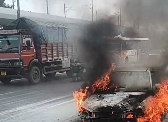 अजरोंडा चौक के पास चलती कार में लगी आग, चालक सुरक्षित