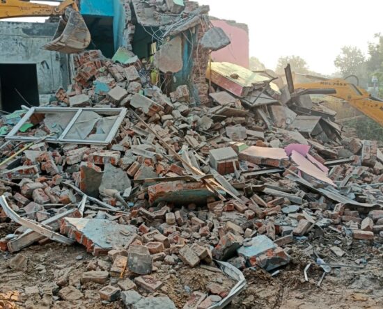 नशा तस्कर सत्यदेव के खिलाफ कार्यवाही करते हुए दो मंजिला इमारत को किया ध्वस्त
