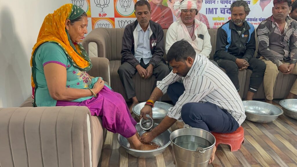 Faridabad/Alive News: होली के अवसर पर नगर निगम फरीदाबाद के पार्षद जसवंत पवार सैनी ने अपने कार्यालय में क्षेत्र के सफाई कर्मियों के सम्मान में विशेष कार्यक्रम आयोजित किया। इस दौरान उन्होंने सफाई कर्मियों के चरण पखारकर उनका अभिनंदन किया और सम्मान स्वरूप भेंट प्रदान की।