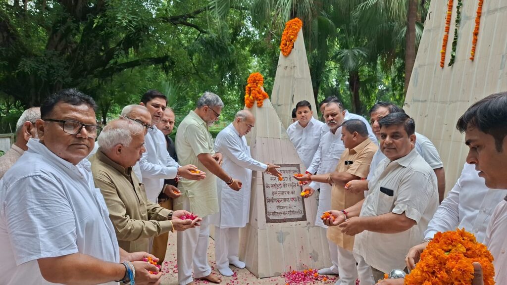 Faridabad/Alive News: विभाजन विभीषिका दिवस की स्मृति में आज बल्लभगढ़ के विधायक एवं पूर्व कैबिनेट मंत्री पं. मूलचंद शर्मा ने नगर के विभिन्न स्थलों पर जाकर राष्ट्र के महापुरुषों को श्रद्धांजलि अर्पित की और विभाजन काल के प्रत्यक्षदर्शियों को सम्मानित किया। कार्यक्रम में नगर के पार्षदगण, गणमान्य नागरिक एवं बड़ी संख्या में लोग शामिल हुए।