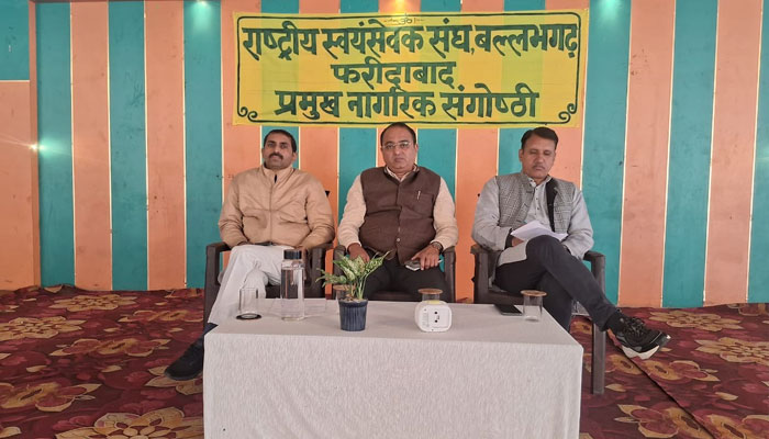 Faridabad/Alive News: राष्ट्रीय स्वयंसेवक संघ के सौ वर्ष पूर्ण होने के उपलक्ष्य में सेक्टर-3 स्थित सामुदायिक भवन में नागरिक विचार गोष्ठी का आयोजन किया गया। कार्यक्रम का मुख्य विषय “राष्ट्रीय स्वयंसेवक संघ के शताब्दी वर्ष व पंच परिवर्तन की समाज निर्माण में भूमिका” रहा। गोष्ठी में क्षेत्र के प्रबुद्ध जन, गणमान्य नागरिक एवं स्वयंसेवक बड़ी संख्या में उपस्थित रहे और राष्ट्र निर्माण में सक्रिय सहभागिता का संकल्प लिया।