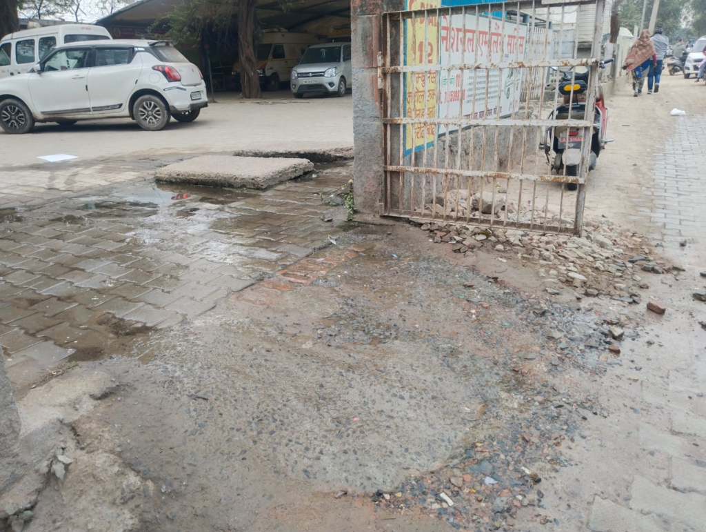 नगर निगम मुख्यालय के सामने गंदा पानी भरने से सड़क टूटी, जिम्मेदार बेखबर