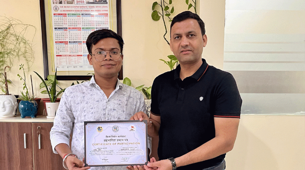 फिल्म निर्माण प्रशिक्षण कार्यशाला में भागीदारी कर लौटे जे.सी.बोस विश्वविद्यालय के मीडिया विद्यार्थी धीरेन सिंह ने मीडिया विभागाध्यक्ष प्रोफेसर डॉ.पवन सिंह से मिलकर अपने अनुभव साझा किए और इस सुअवसर के लिए उनका विशेष धन्यवाद व्यक्त किया। विभागाध्यक्ष प्रोफेसर डॉ.पवन सिंह ने बताया कि रोहतक में सुपवा में आयोजित इस कार्यशाला में फिल्म निर्माण क्षेत्र की ख्याति प्राप्त शख्सियत जैसे पवन मल्होत्रा, सुदीप्तो सेन, अतुल गंगवार, अनूप लाठर, राकेश योगी, हरिओम कौशिक, विकास बैरवाल और रोहित भारद्वाज शामिल रहे। जिन्होंने अपने अनुभव को प्रतिभागियों को बताया। कुलगुरु प्रो.सुशील कुमार तोमर ने अपने बधाई संदेश में कहा कि किसी भी तरह की कार्यशाला में थ्योरी के साथ साथ व्यावहारिक ज्ञान मिलता है जो भविष्य में बहुत उपयोगी सिद्ध होता है।