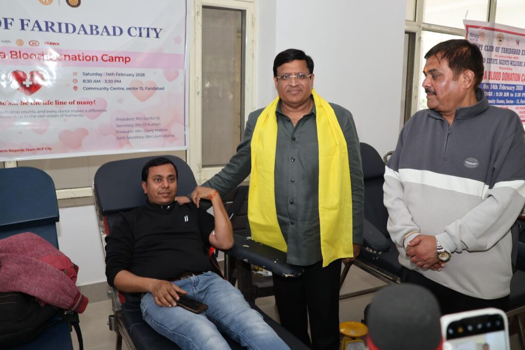 फरीदाबाद एस्टेट एजेंट वेलफेयर एसोसिएशन द्वारा ‘हिन्द की चादर’ गुरु तेग बहादुर के 350वें शहादत वर्ष को समर्पित विशाल रक्तदान शिविर का आयोजन किया गया। इस अवसर पर मंत्री ने रक्तदाताओं के उत्साह की सराहना करते हुए कहा कि रक्तदान न केवल जीवन बचाने का माध्यम है, बल्कि समाज में करुणा और सहयोग की भावना को भी मजबूत करता है। उन्होंने सभी रक्तदाताओं, आयोजकों एवं सहयोगी संस्थाओं का आभार व्यक्त किया।